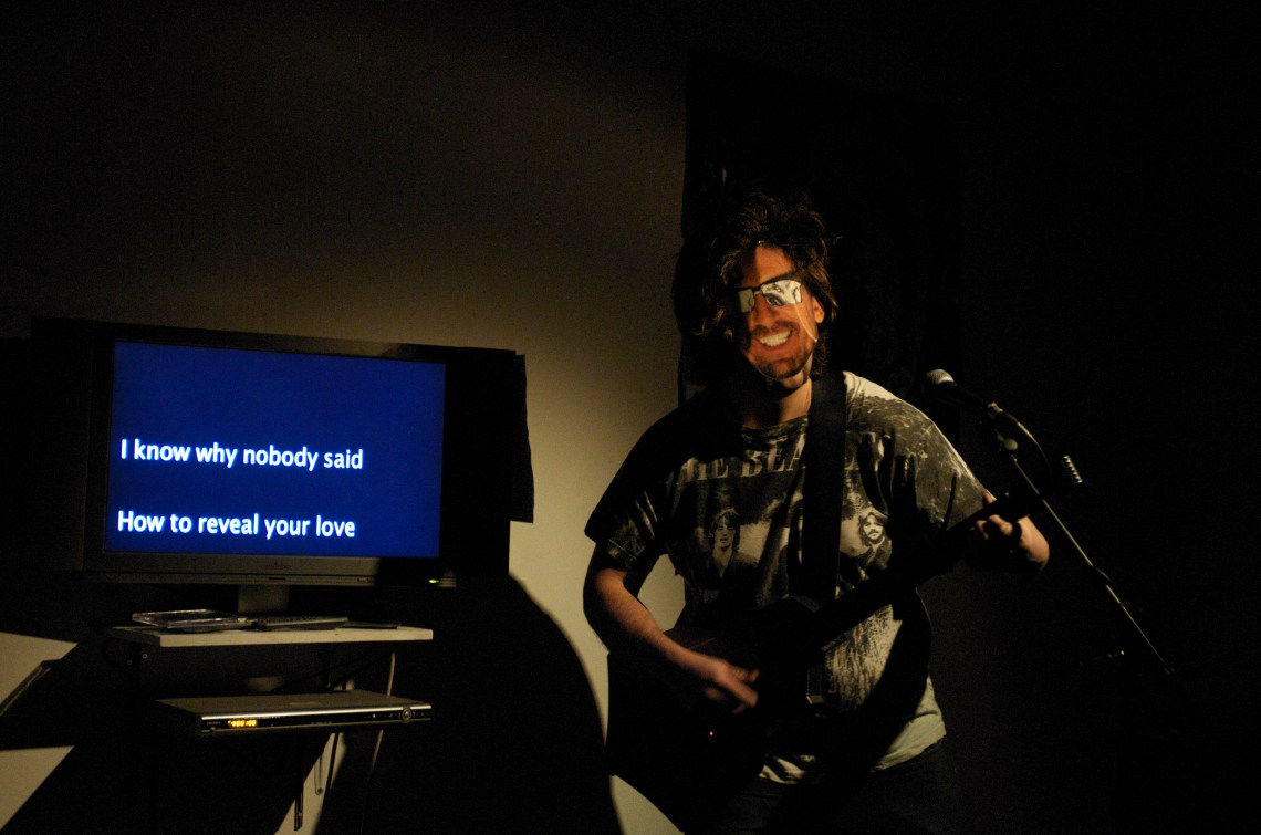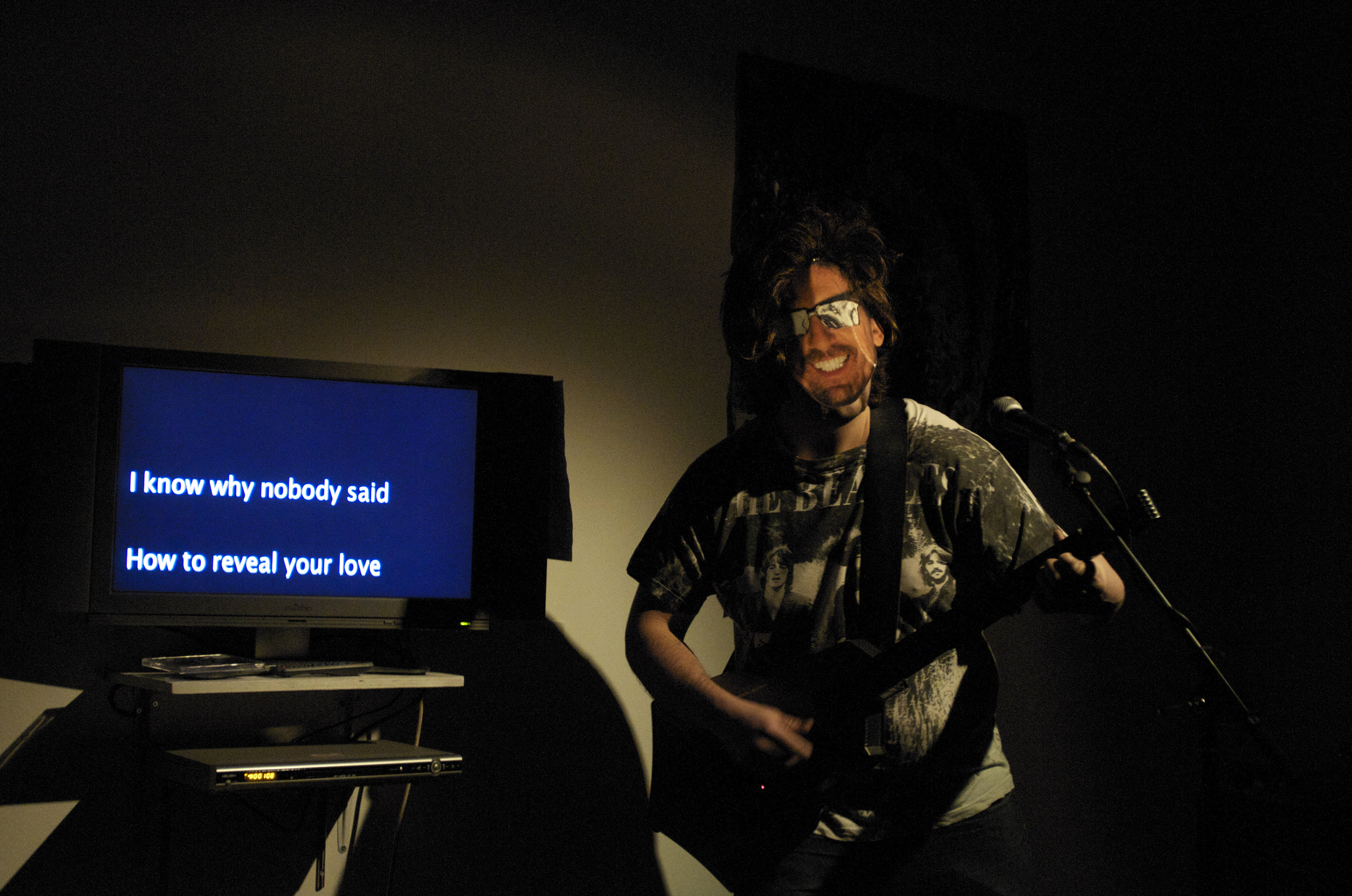 involves an interactive station where the audience is presented with audio-based artworks to be interpreted through language and images. These notations will be re-used in the creation of subsequent artworks as part of an ongoing regurgitated public-collaborative project. Christina Denyer’s installation comprises of two short animated films from the Helios Institute, which appropriate scientific methodology and educational aesthetics in order to present an alternative history of the universe. Absurd yet plausible, these theories are extrapolated from existing facts or hypotheses. During the private view there will be a lecture with Prof. Isaac Lemming on the Bythingson-Hearney Cosmological Theorem, transmitted live from the Helios Institute (www.heliosinstitute.net). This will be recorded on the night and presented for the duration of the show. Rebecca Bibby & Jessica Paine form a dysfunctional collaborative duo. Through endless communications, mis-communications and non-communications, the pair explore the difficulties in their artistic relationship. For ‘Image:Action:Text’ the duo present The Self-annihilating Finale, a live performance piece that cultivates yet simultaneously sabotages an arena of mutual exchange between the two artists. A one-off performance of The Self-annihilating Finale will take place during the private view, leaving only the residual documentation of the exchange for the duration of the exhibition.