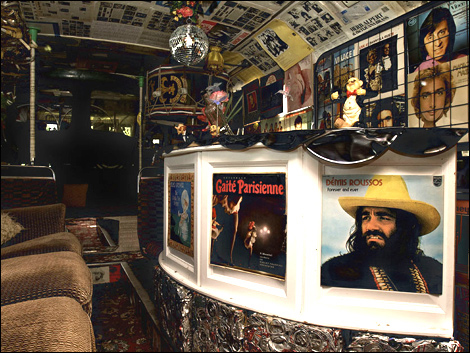 “Inside we’ve carved out environments which include a fireplace and a bar made from crushed beer can blocks complete with melted vinyl record bar top,” says Victoria. “There’s also a love corner with Mills and Boon wallpaper and also a sprouting tree! “Every surface is covered with society’s abandoned tat which we have lovingly constructed into a shrine of treasures.”