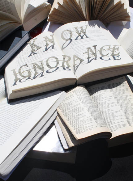 Six artists working individually and collaboratively explore the continual oscillation between knowledge and ignorance. Through integrating artwork within a library, boundaries of what can be defined as art, exhibition and library become indistinct.