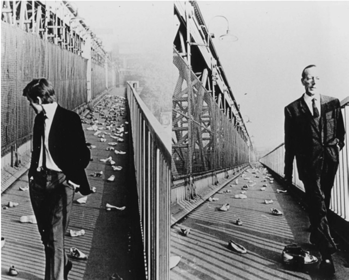 Within the exhibition, archival and historical settings are re-animated only to be undone, including William E. Jones’s video Berlin Flash Frames, 2010, which parcels out footage from an unedited film produced by the U.S. Information Agency found in the National Archives of the United States labeled with the provisional title “Berlin, 1961”. Jones’s re-edit features distanced shots of the Berlin Wall under construction alongside propagandistic scenarios featuring actors on stage sets. Similarly, Emily Roysdon’s Untitled (David Wojnarowicz Project), 2001-2007, responds to and redirects Wojnarowicz’s earlier work Arthur Rimbaud in New York, 1978-79, while an excerpt from Marc Camille Chaimowicz’s Shoe Waste?, 1971-2005, returns to documentation of a clandestine action performed above and beneath the River Thames in London.