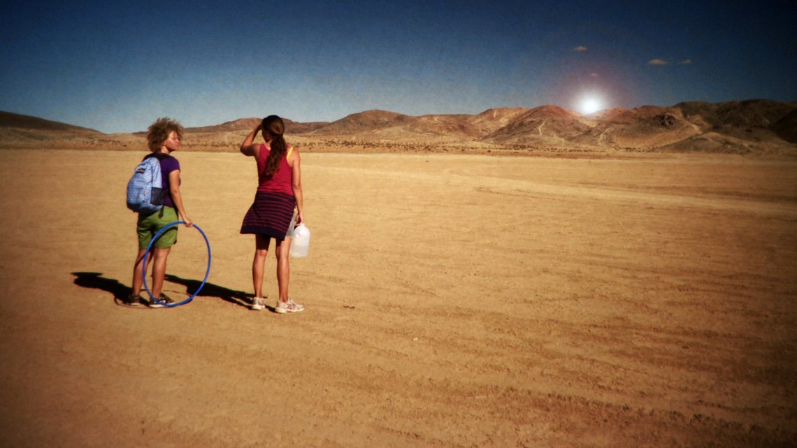 Night Sky is a 75 minute narrative film by Alison O’Daniel that enacts a sensory experience on the bodies of the viewers with live accompaniment and parallel, overlapping stories: two girls–Cleo and Jay–travel through the desert while a group of contestants compete in a dance marathon. This performance emphasizes music within the film by Ethan Frederick Greene, Lucky Dragons, and Evelyn Glennie with live musical accompaniment by *POLLYFIBRE* using adapted tools and objects amplified to create noise-scapes. Balloons will be provided for the Deaf audience spectrum.