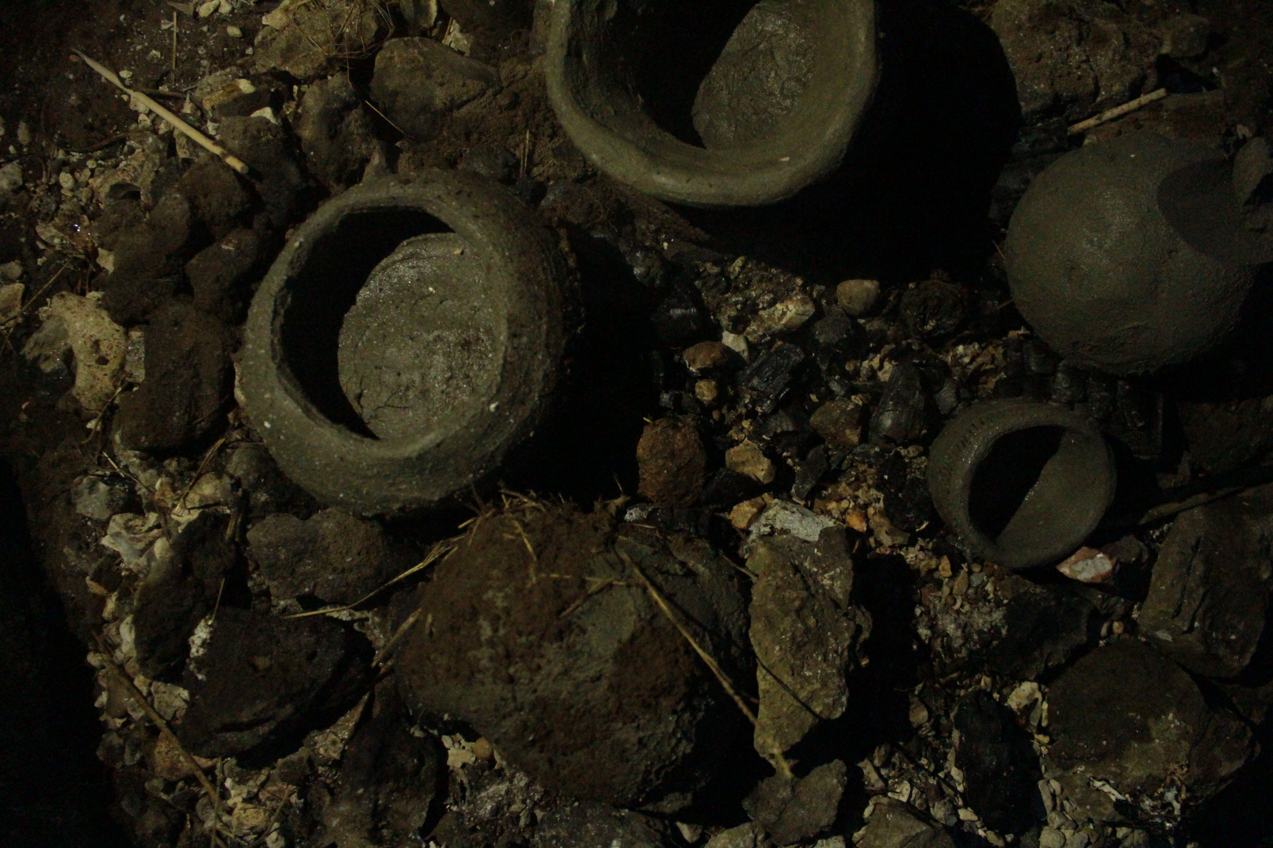 On the 15th July 2016 at sunset, a group of archaeology students gather around a lit fire pit set in amongst Holly Shoesmith’s circle of stone monoliths, which soon start emitting an eerie groan. The assembled group began to circle the pit in a trance, the fire gaining a stronger presence as the sun sets behind the uplands. Pam Rose-Cott appears dressed in Neolithic regalia, her face covered in war paint. She takes a seat by the fire, and invites the group to participate in a guided meditation that emits from the stones themselves. The meditation continued with increasingly heavy breathing stimulating a memorizing mental trip through time. The climax resulted in a procession to the waterlogged trench ‘I’ where a symbolic baptism proceeded. Throughout the intensive experience Will Cunnington sculpted clay pottery.