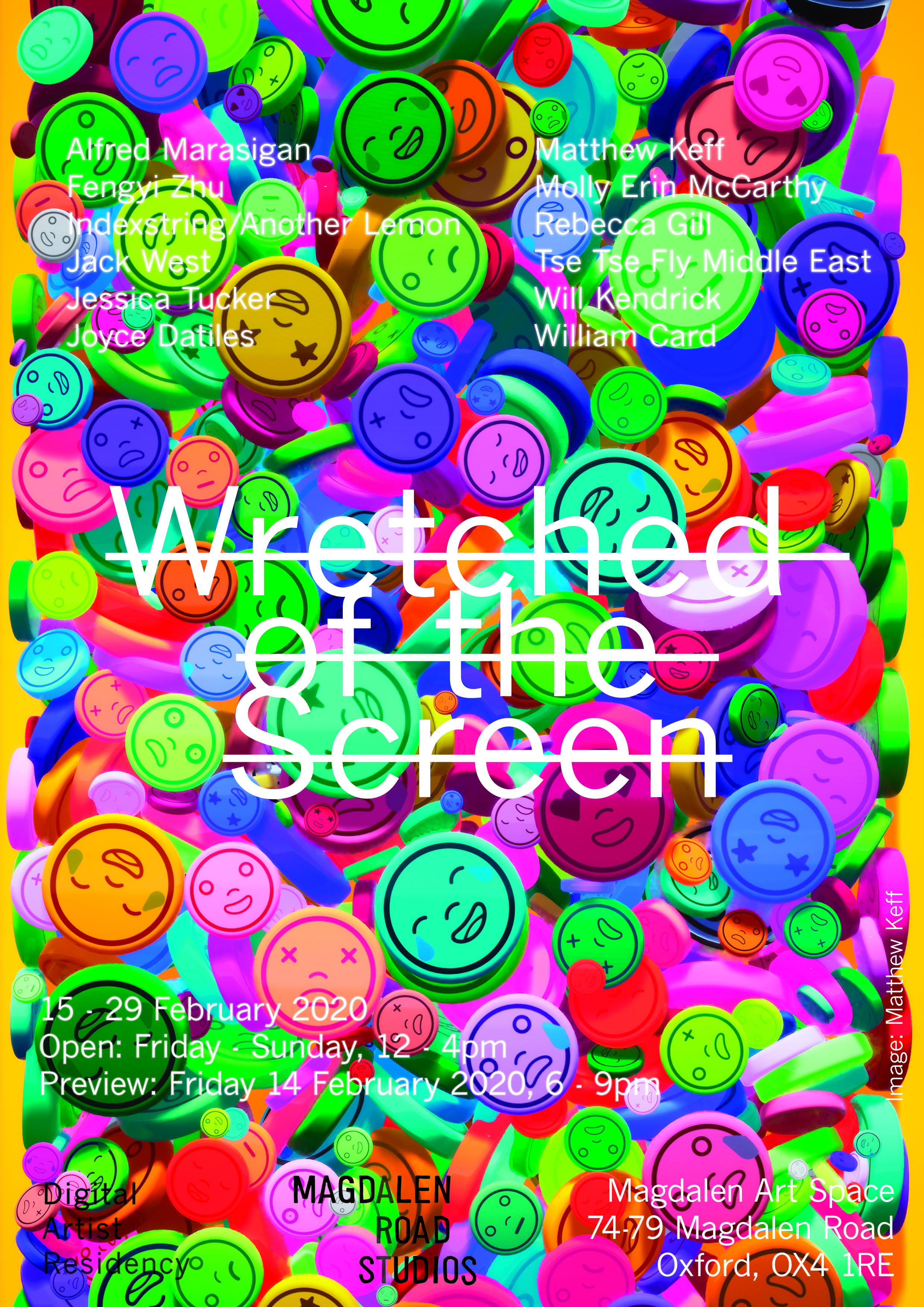 WRETCHED OF THE SCREEN takes its name from Hito Steyerl’s collection of essays from 2013. In it, Steyerl creates a scathing assessment of the socio-cultural implications of digital image production with digital media and our dependence on screen-based technology. The Wrong Embassy WRETCHED OF THE SCREEN will bring together a collection of artists’ works which examine ‘the screen’ as a medium. During the online pavilion, artists have developed works focusing on the materiality and mediation of the screen throughout society. The IRL exhibition at MAS (Oxford, UK) will be a chance to experience the actualised developments of their online research.