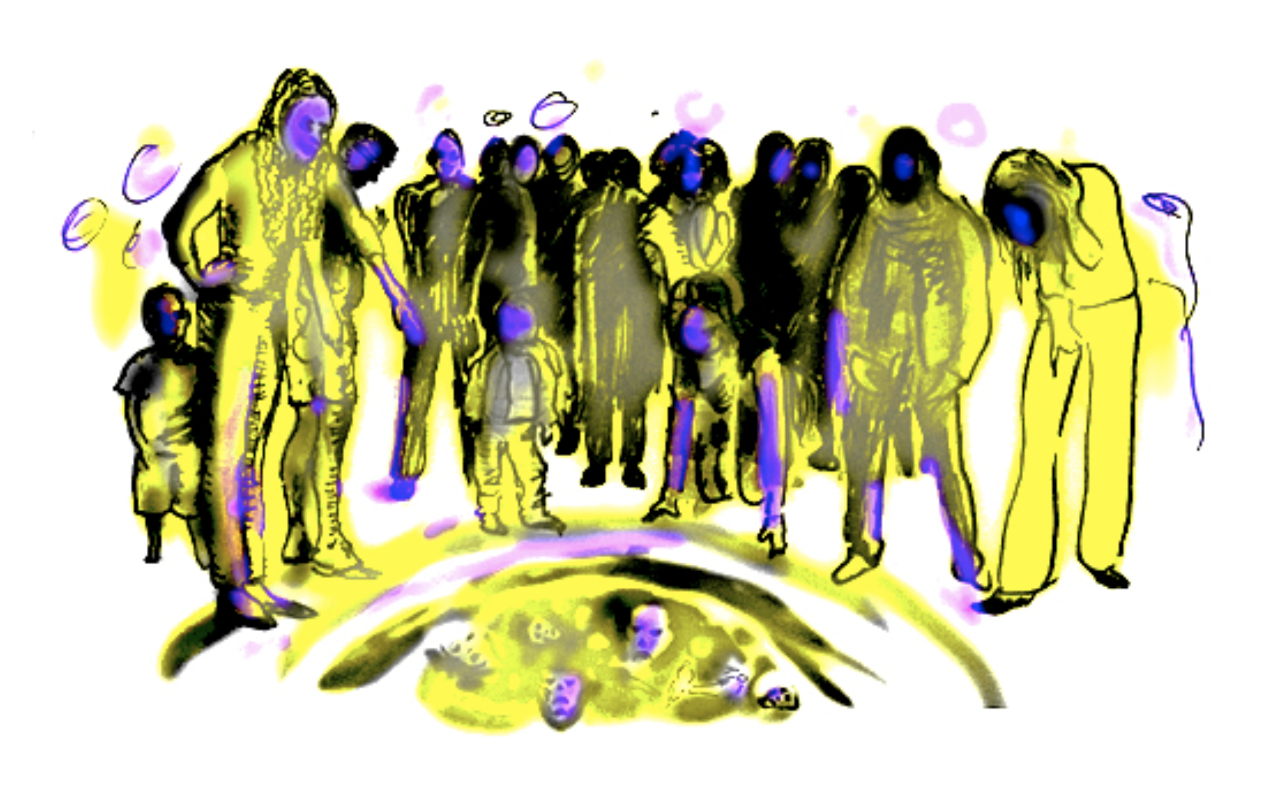 The exhibition ‘Well’ presents an 87 x 22 ft Vinyl print of Hell, Splayed across the gallery floor, With accompanying audio work, Drawing upon the documentation of Vito Acconci’s sub-floor Seedbed (1972); Carolee Schneemann and David Hammons’ Floor-based Meat Joy (1964) And Bliz-aard Ball Sale (1983) As concerned with gestures of looking down, Or maybe looking up, And John Martin’s saturated spectacles Of religious apocalypse.