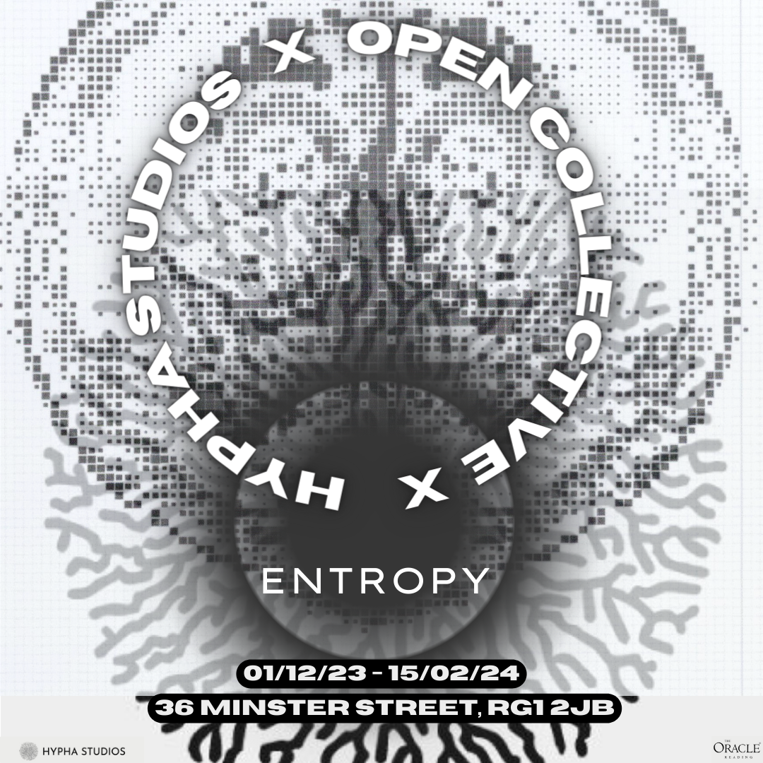‘Entropy’ is an exhibition curated by Open Collective: eleven emerging artists who met at university with a desire to further their artistic practices and develop an engaged artistic community. The collective is interested in exploring the concept of entropy, the world’s natural tendency for chaos. In Greek, entropy describes ‘a transformation’. This has inspired us to transform the chaos of the never-ending expansion of the 21st Century into meaningful experiences.