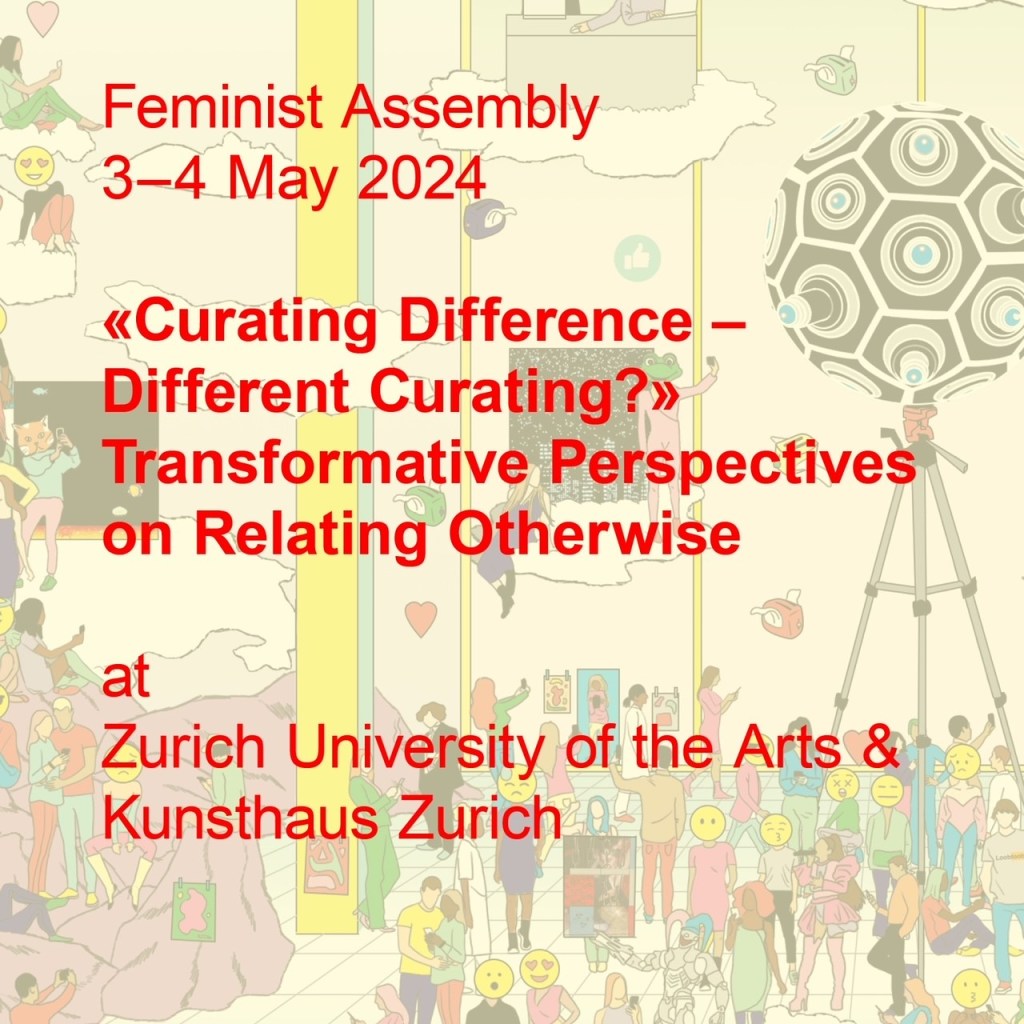 We are pleased to invite you to “Curating Difference – Different Curating?” The event will be kicked off by a public talk on exhibiting and relating otherwise by Stella Rollig on Friday, 3rd May, 6 pm at Zurich University of the Arts, followed by a feminist assembly on Saturday, 4th May 2024 with a public “long tables” exchange (3–5pm) at Kunsthaus Zurich, Auditorium Pfister-Saal.