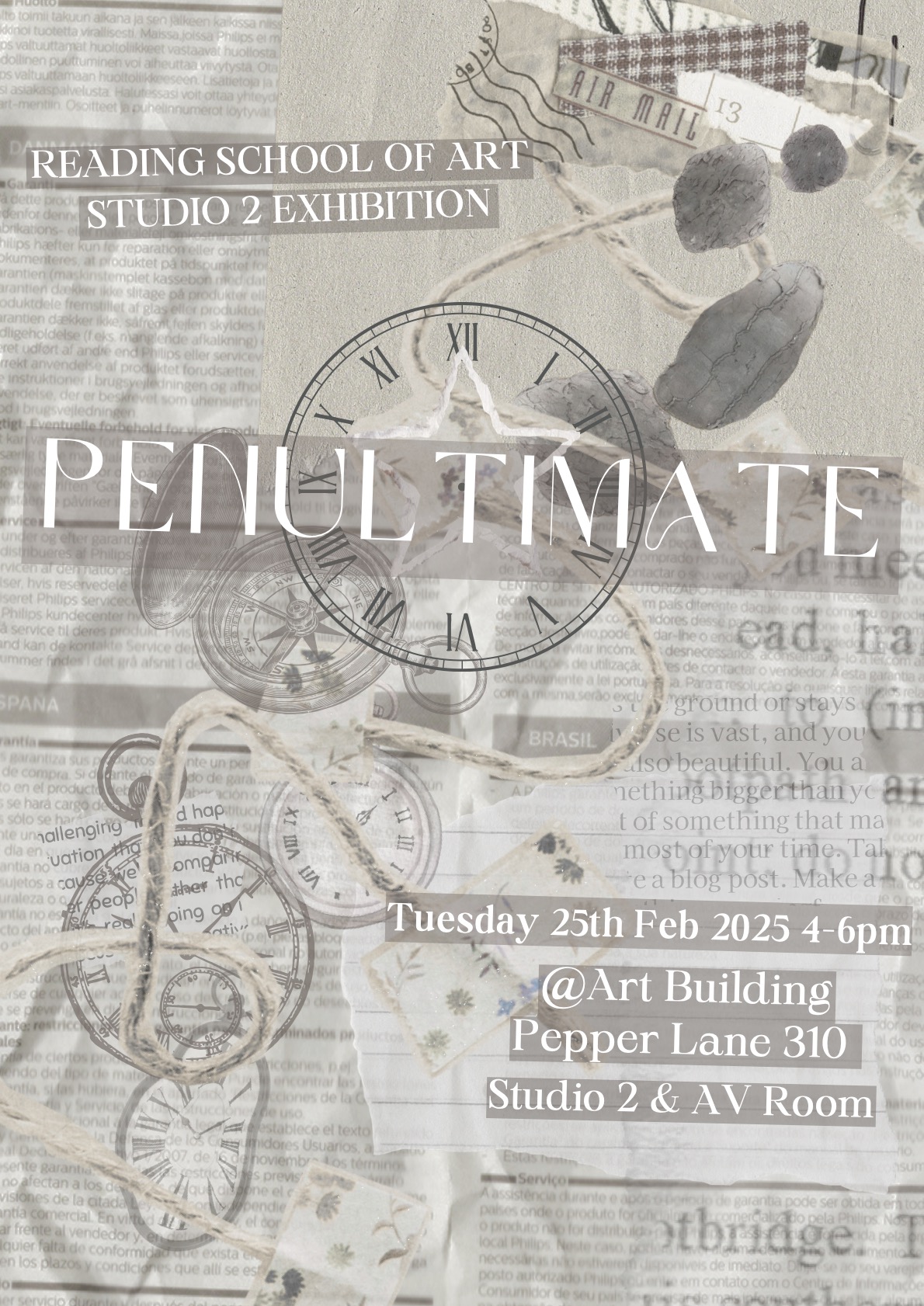 Studio 2 Exhibition: Penultimate Reading School of ArtFebruary 25, 2025Exhibition Post navigation PreviousNext Reading School of Art Studio 2 Exhibition: Penultimate Tuesday 25th February 4pm = 6pm Pepper Lane Whiteknights Campus RG6 6PU Share this: Click to email a link to a friend (Opens in new window) Email Click to print (Opens in new window) Print Click to share on Facebook (Opens in new window) Facebook Click to share on X (Opens in new window) X Click to share on Tumblr (Opens in new window) Tumblr Click to share on Pinterest (Opens in new window) Pinterest Click to share on LinkedIn (Opens in new window) LinkedIn Click to share on Reddit (Opens in new window) Reddit Click to share on WhatsApp (Opens in new window) WhatsApp Like Loading...